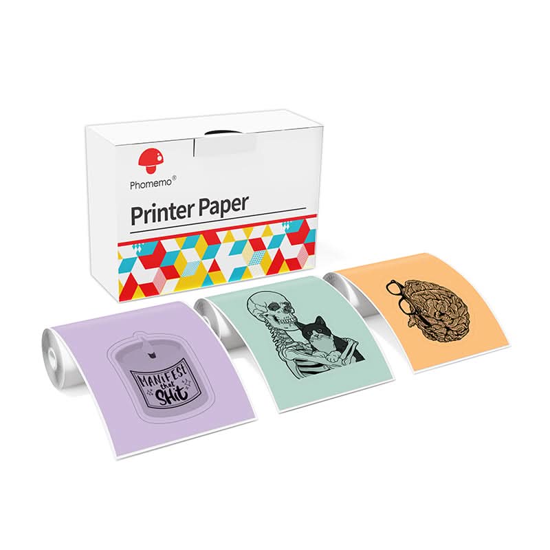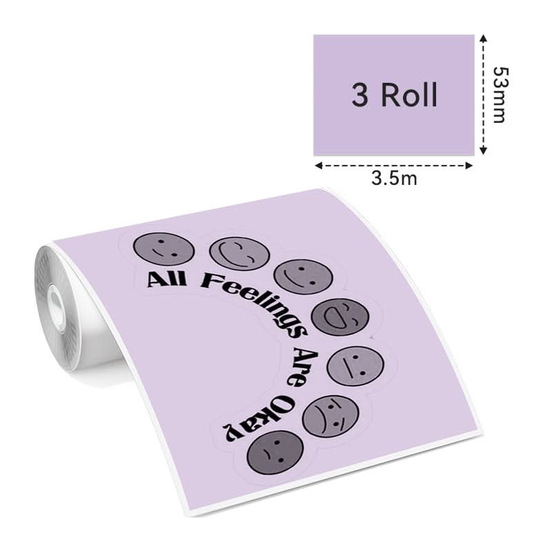 Phomemo 53 mm oranžový / zelený / fialový samolepiaci termo papier s výdržou 20 rokov pre tlačiarne T02 | 3 rolky.
